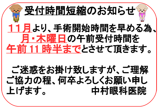 受付時間変更のお知らせ